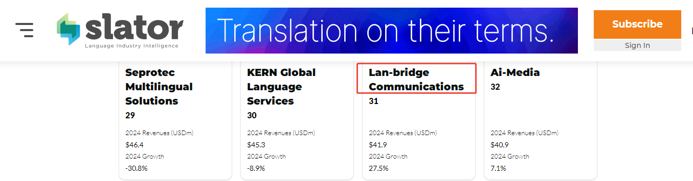 "The Slator 2025 Language Service Provider Index"原文鏈接如下: